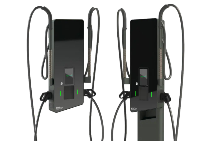 Perfect for wall or pedestal mounting, the HYC50 supports both CCS and CHAdeMO connectors and integrates smart features like dynamic load management, payment terminals, and backend connectivity via OCPP.